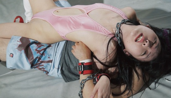 有村のぞみ…男子のパワフルな攻撃を柔軟性のある身体で耐えながら反転攻勢に出るクールビューティ有村のぞみ。この厳しいチェーンデスマッチの中でも五分に渡り合う。すると業を煮やした男子レスラーのセクハラ攻撃が炸裂する。そもそもがルール無用のデスマッチだ。徐々に追い込まれて大ピンチ!